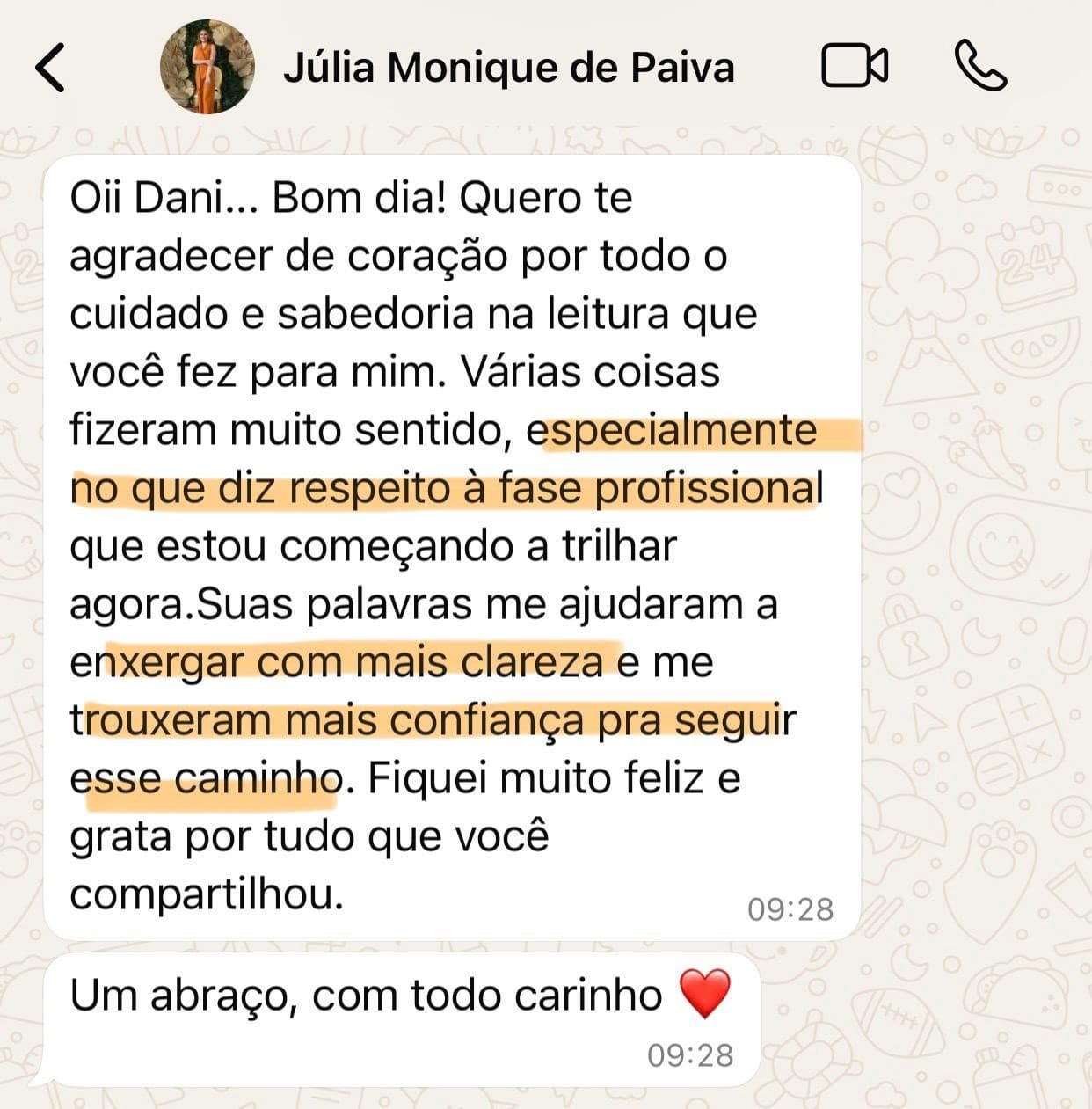 Receba ajuda nas tomadas de decisões, ganhando clareza e confiança para seguir o melhor caminho.
